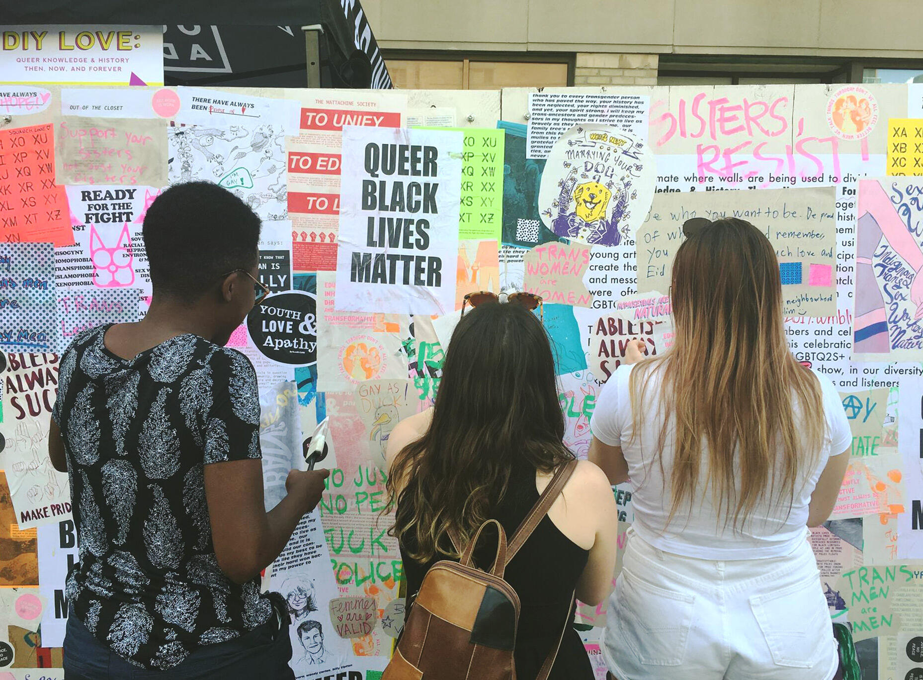 DIY LOVE 2017 was a public wheat pasting workshop at Pride Toronto’s 2017 Street Fair in celebration of LGBTQ2S+ activist knowledge facilitated by a group of LGBTQ2S+ artists, designers, writers, and curators. With the intention of creating a wall that celebrates queer knowledge and history, parade goers had the opportunity to wheat paste using pre-made and donated posters, co-create with the posters, or simply make their own!The project is supported by OCAD University, Xpace Cultural Centre, and Toronto's larger LGBTQ2S+ community. We would like to thank the artists and groups who kindly donated posters and other content to the project: Anthea Black, OCAD U Student Press, Patterns Magazine, The Public, Francis Tomkins & Yasmin Emery, and Mary Tremonte.
